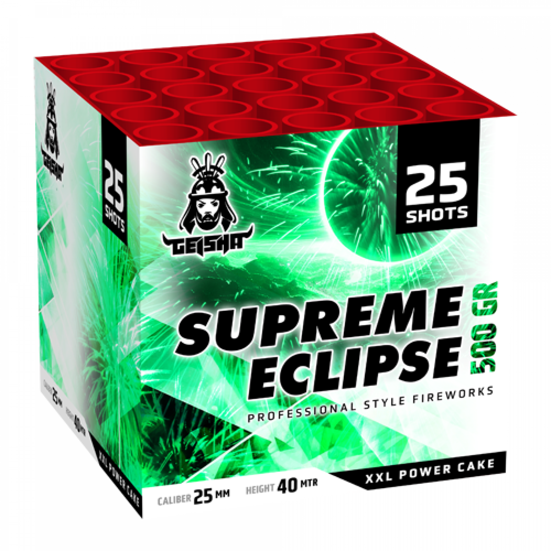 25 shots, 500 gram Supreme cake, extreem supreme power.